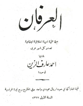 مُنشئ هذه المجلة منذ نعومة أظفاره وهو يتشوف لإنشاء صحيفة يتمكن بها من خدمة أمته ووطنه إذ (كل امرء ميسر لما خلق له) والآن قد قيض الله لنا ما نتمناه (والأمور مرهونة بأوقاتها) فأنشأنا هذه المجلة على اعتراف منا بالعجز والتقصير ودعوناها (العرفان) ولكل مسمى من إسمه نصيب وقد اتخذت على عاتقها البحث في العلم والأدب والأخلاق والإجتماع قدر ما يُستطاع على أنها ستزيد مباحثها إذا رأت إقبالاً فهي تعمل على ناموس الإرتقاء وسنة الكون (سنة الله في خلقه ولن تجد لسنة الله تبديلا) وتصدر في كل شهر عربي وفقنا الله لإتمام هذه الخدمة، والقيام بهذه المهمة، كي يتسنى لنا خدمة الوطن والأمة، خدمة حقيقية، في ظل حكومتنا الشوروية بمنّه ويمنه.